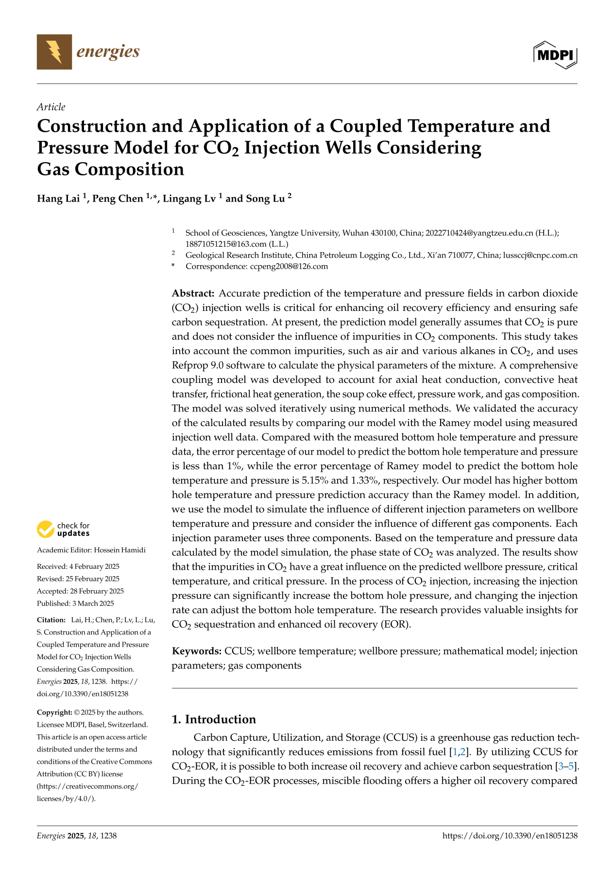 硕士生来航在SCI收录期刊《Energies》发表题为“Construction and Application of a Coupled Temperature and Pressure Model for CO2Injection Wells Considering Gas Composition”的研究论文。嘟嘟成人网