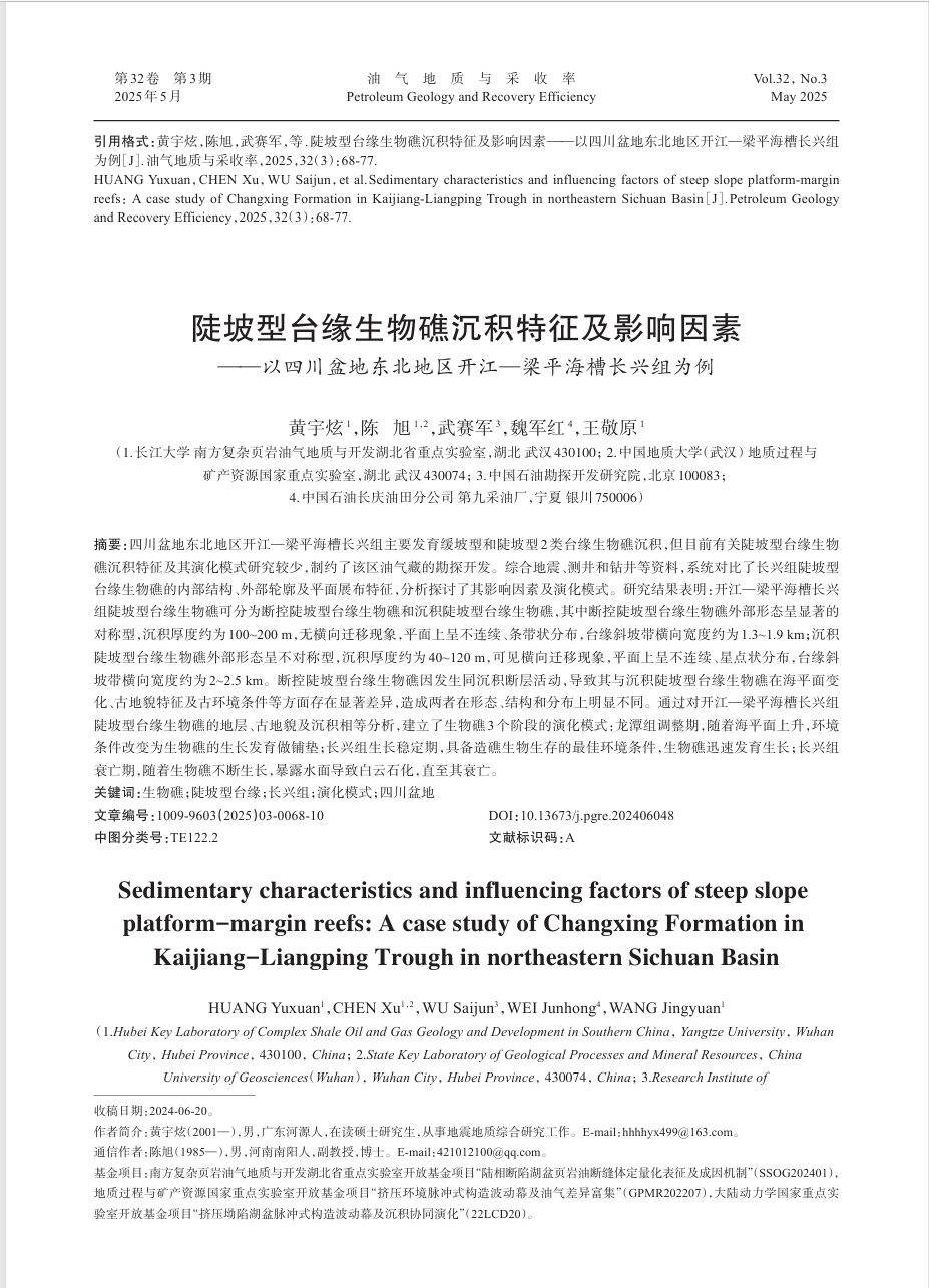 地质学专业2024级硕士生黄宇炫在中文核心期刊《油气地质与采收率》发表题为“陡坡型台缘生物礁沉积特征及影响因素——以四川盆地东北地区开江—梁平海槽长兴组为例”的研究论文。嘟嘟成人网