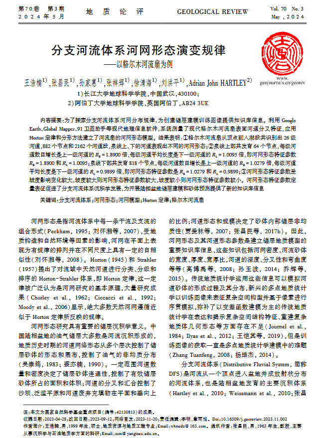 硕士生王浩楠在中文核心期刊《地质论评》上发表题为“分支河流体系河网形态演变规律-以格尔木河流扇为例”的研究论文。嘟嘟成人网
