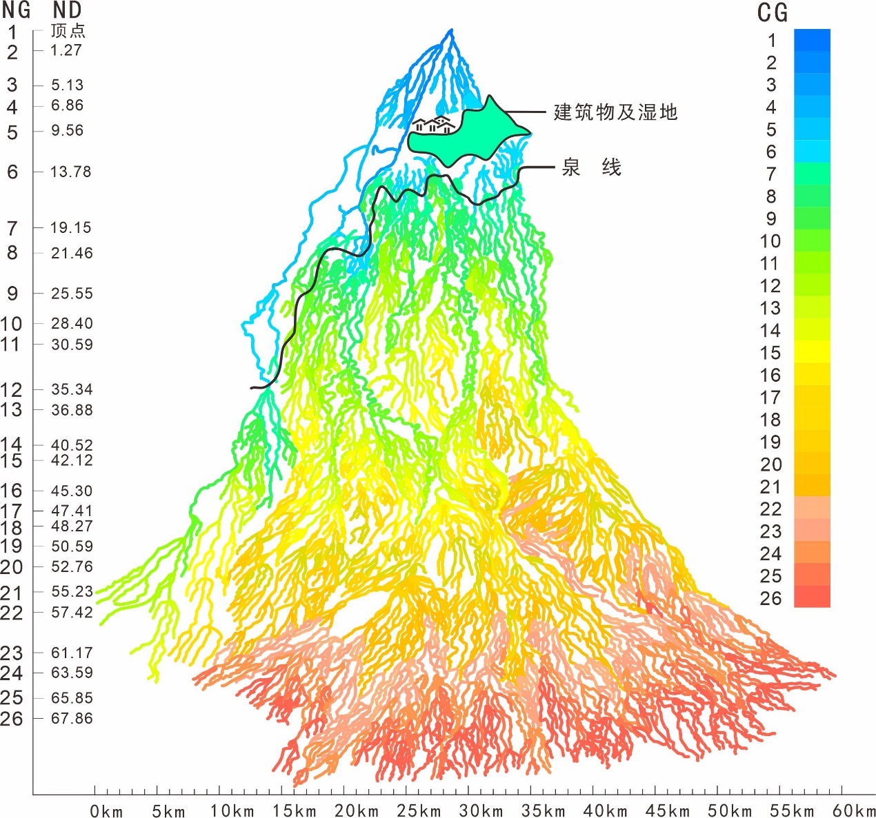 图1 格尔木河流扇河网形态模型