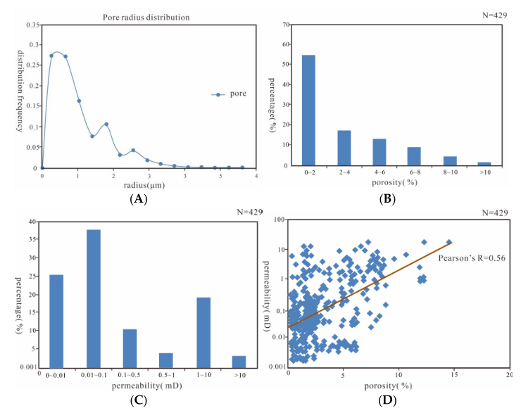 博士生陈世磊在《Applied Sciences》上发表题为“Pore Types and Dolomite Reservoir Genesis of the Fifth Member of the Ordovician Majiagou Formation in the Central and Eastern Ordos Basin”的研究论文。文章综合运用铸体薄片、碳酸盐岩碳氧同位素、、阴极发光、微量元素、稀土元素及流体包裹体等分析测试方法,并结合构造背景、沉积微相及成岩作用等资料,深入剖析白云岩的成因机理。分析表明,(1)受到海平面升降和中央古隆起的阻挡作用控制,研究区内奥陶系马家沟组五段膏盐下白云岩储层在短期海退和短期海进具有明显的差别,纵向上具有旋回性,依据研究区内大量马家沟组白云岩薄片镜下观察鉴定结果,研究区内白云岩可分为同沉积或交代成因的残余鲕粒白云岩,次生交代或重结晶成因的泥晶白云岩,粉晶白云岩和细晶白云岩。储层孔隙主要发育晶间孔、铸模孔、溶孔和裂缝。(2)马家沟组五段白云岩主要由准同生白云岩、埋藏白云岩及热液白云岩组成。根据地球化学特征结合岩石学特征,确定马家沟组五段白云石Sr含量平均值为407.3×10-6,具有低Fe、低Mn、高Sr、高Na的特点,稀土元素含量为0.01×10-6-21.8×10-6,具有典型碳酸盐岩低稀土元素含量特征,δ13C的含量介于-2‰-2‰之间δ18O的含量介于-12‰到-4‰之间,说明其成岩环境为埋藏环境。(3)研究区内从准同生期到中-深埋藏期的成岩演化序列为:准同生白云石化、硬石膏溶解→渗流粉砂充填、淡水白云化、方解石和石膏充填、压溶压实作用、方解石部分溶解→石膏充填、溶缝溶孔溶洞、埋藏热液白云化、白云石部分溶蚀→方解石完全溶蚀、孔隙溶蚀扩大、石英黄铁矿充填。其中压实压溶作用早期使原生孔隙迅速减少,后期则产生缝合线等为储层流体运移提供通道;重结晶作用则在中-深埋藏期使孔隙减少。