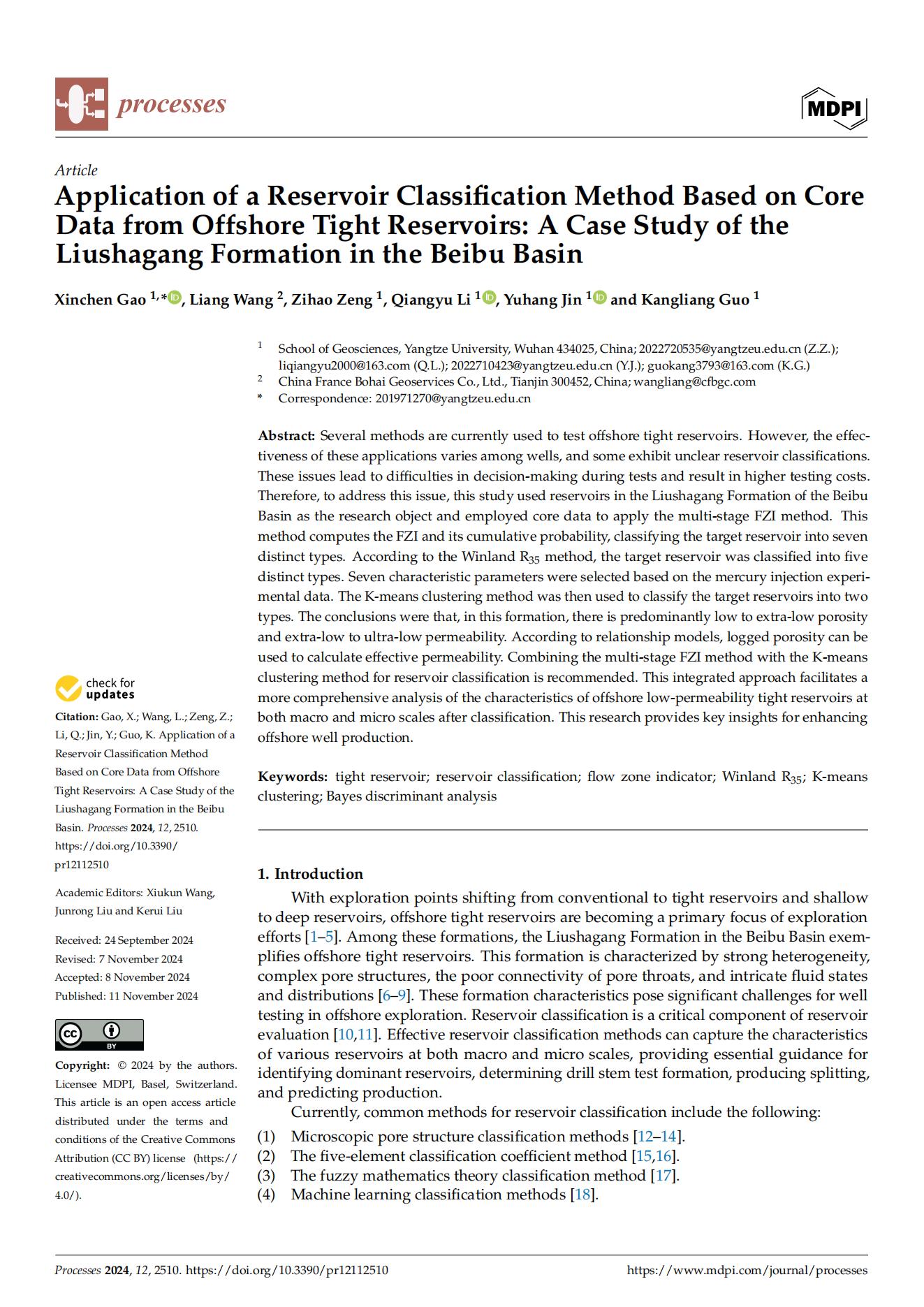 22级博士研究生在期刊《Processes》上发表题为“Application of a Reservoir Classification Method Based on CoreData from Offshore Tight Reservoirs: A Case Study of theLiushagang Formation in the Beibu Basin”的研究论文。嘟嘟成人网