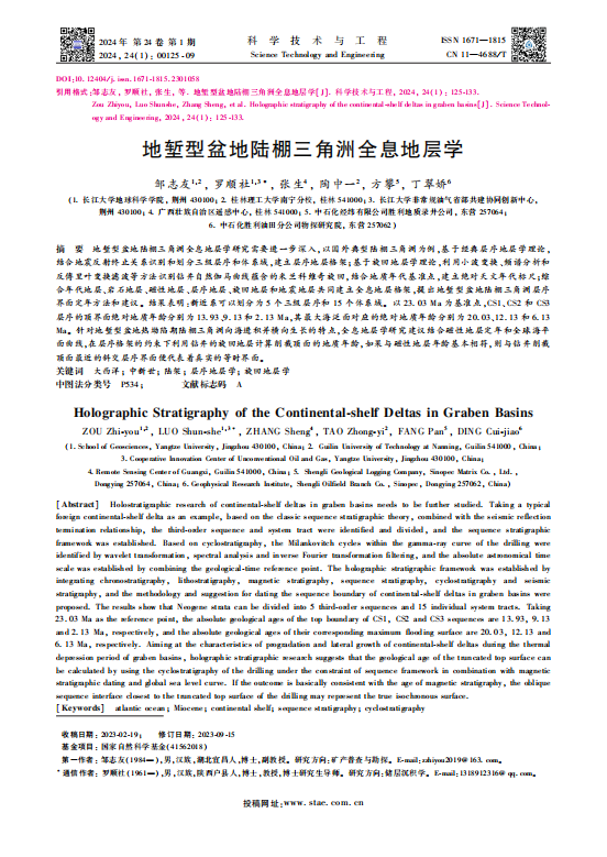 邹志友博士联合研究团队,在《科学技术与工程》期刊上发表了题为“地堑型盆地陆棚三角洲全息地层学”的研究文章。该研究聚焦于地堑型盆地陆棚三角洲的全息地层学特征,主要研究内容及成果如下: