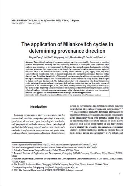 地科院硕士生张庭瑀在胡光明教授的指导下,在期刊《APPLIED GEOPHYSICS》上发表题为“The application of Milankovitch cycles in determining provenance direction”的研究论文,嘟嘟成人网