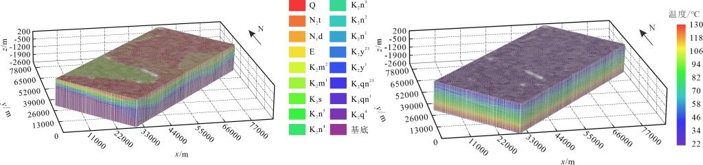 该研究针对吉林大安地区地热异常显著、开发潜力巨大但缺乏详细资源评价的问题,综合区域地质、钻井数据及岩石热物性资料,借助 3D GeoModeller 平台建立三维地质模型,通过三维稳态地温场模拟,精准刻画大安东部地区 2600m 以浅温度场分布特征,并采用有限元体积法对上白垩统三套主力热储层开展地热资源量评估。